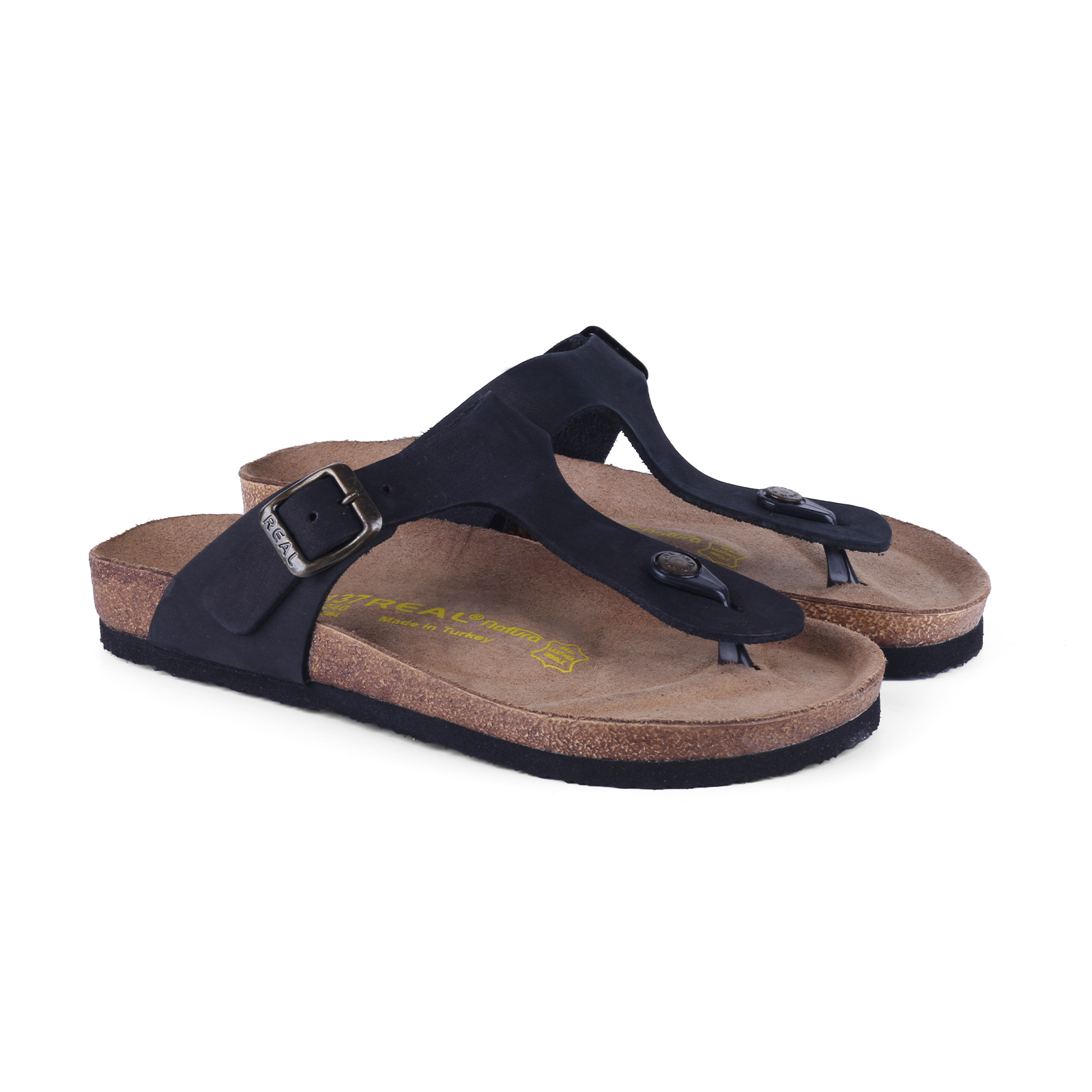 Real Natura 102 Efes Siyah Nubuk Hakiki Deri Kadın Günlük Terlik