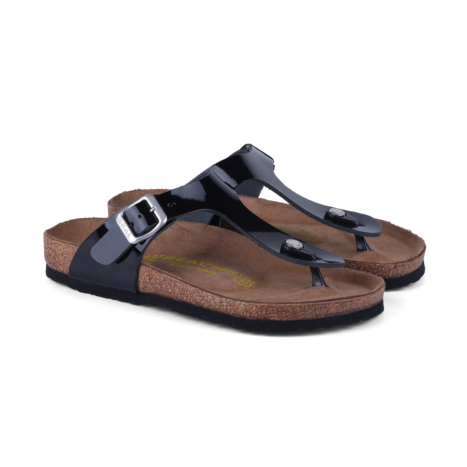 Real Natura 102 Efes Siyah Rugan Hakiki Deri Kadın Günlük Terlik